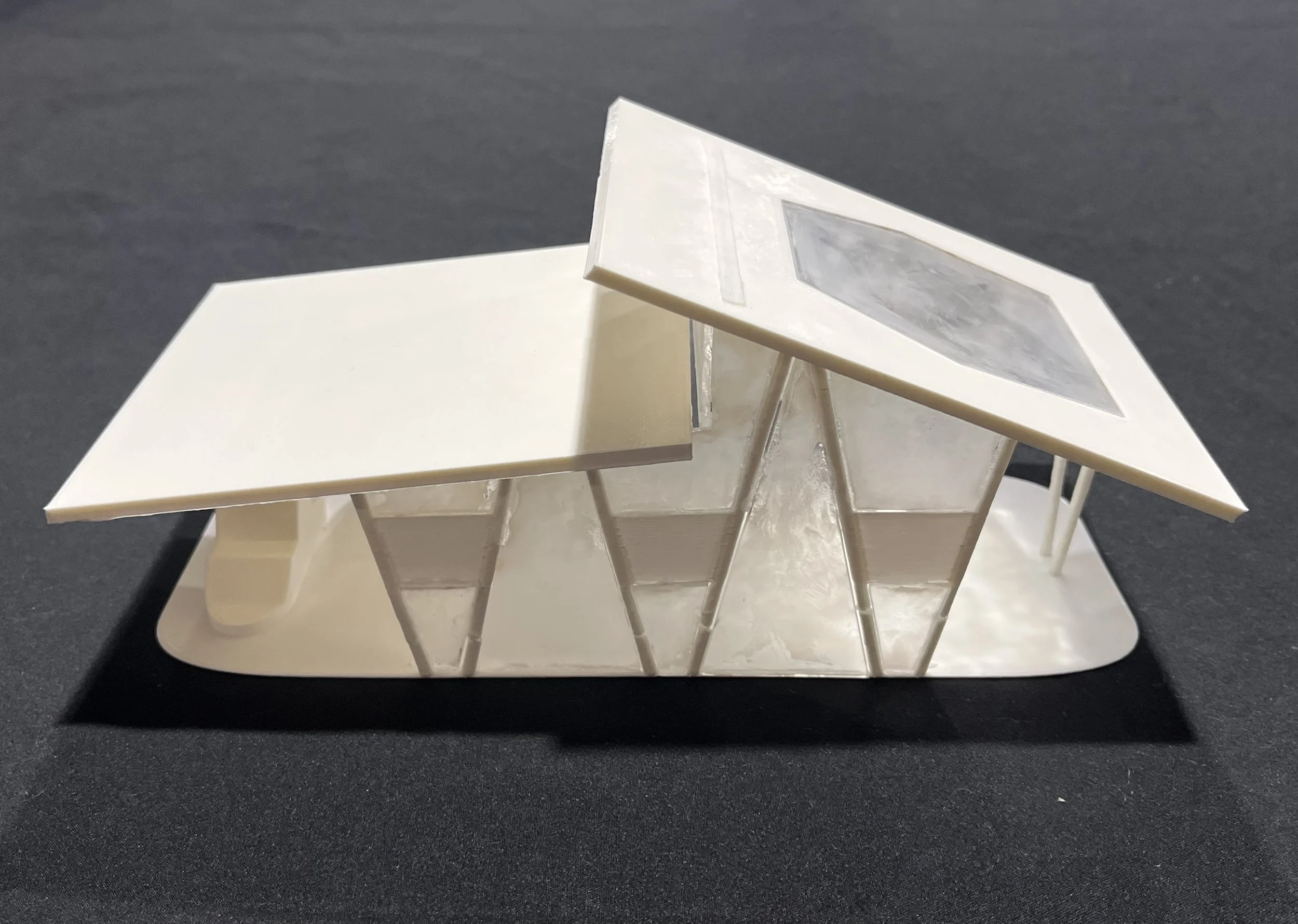 This pavilion functions as both an art market and a communal painting studio. Local artists can display and sell their work to a new demographic in Uptown New Orleans, rather than the tourist-heavy French Quarter. V-shaped columns, inspired by tapered paintbrushes, hold canvases and palettes, while glass-paneled walls allow evenly distributed natural light. Seating accommodates autonomous sitting, perching, lounging, and squatting, offering visitors a clear view of incoming streetcars.
