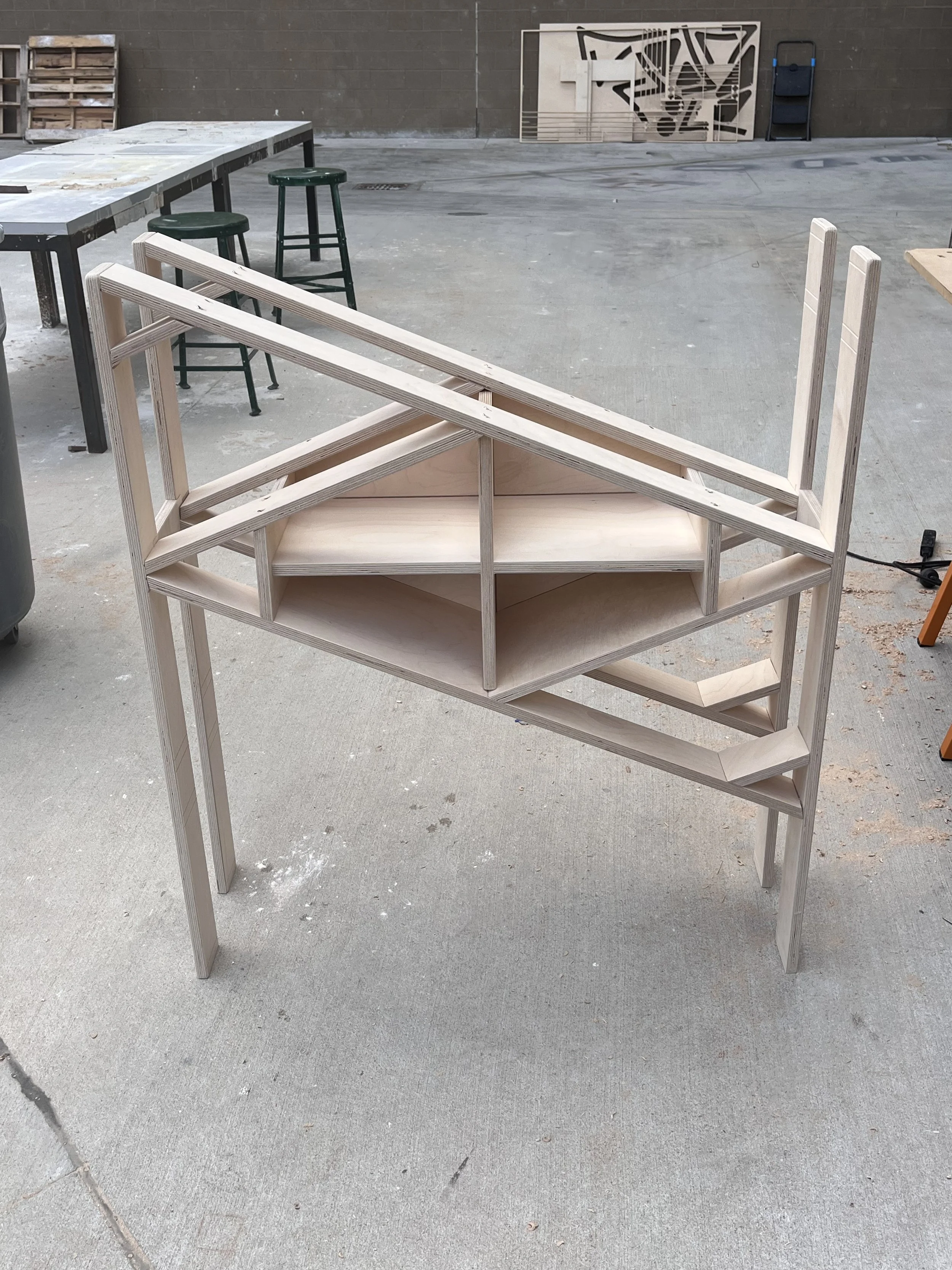 All of the wood used in the piece was cut from a single 8’ × 4’ sheet of plywood using Tulane’s CNC router.